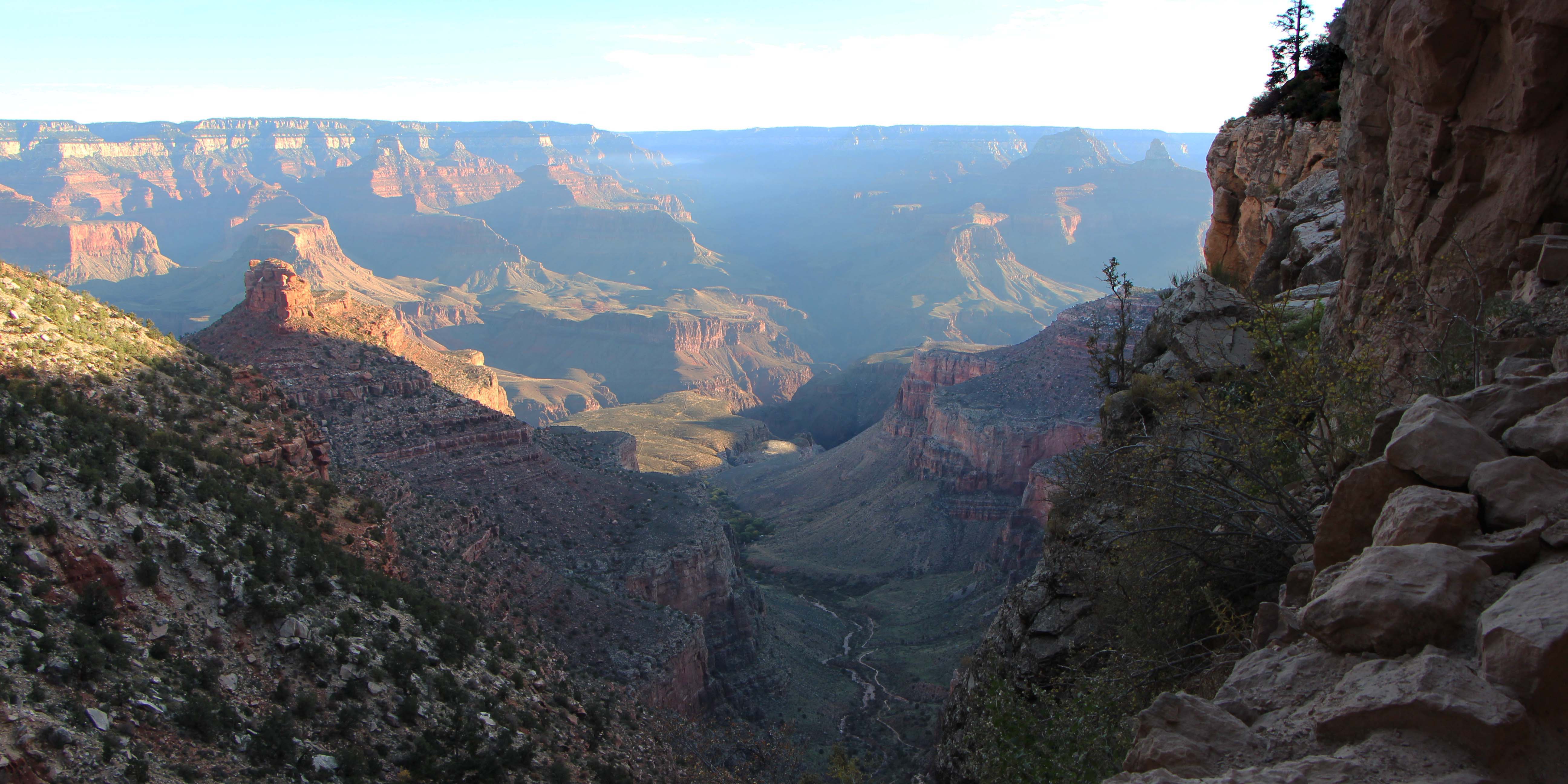 The hike is on the Bright Angel Trail, one of the two main trails that go from the South Rim to the bottom of the Grand Canyon.