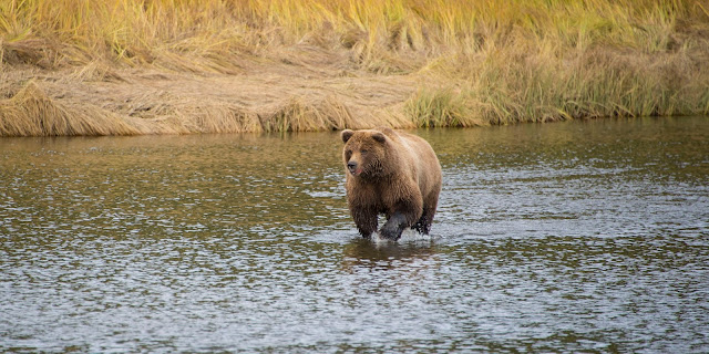 Since Silver Salmon Creek tends to be an area for females and cubs, there is less fighting, although Crimpy Ear had beat up Agro pretty badly a few days before we arrived. That fight was probably more about protecting her cubs than about prime fishing.