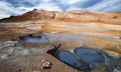 Next, we headed to the Námafjall Geothermal Area, also known as Hverir (see what I mean about names!) on the east side of the lake. It features smoking fumaroles and boiling mud pots, surrounded by multi-colored sulfur crystals.