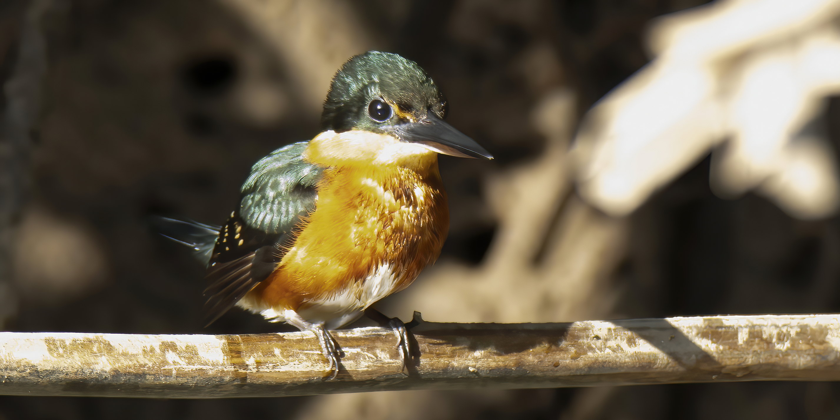 In the mangroves, we spent quite a bit of time with an adorable green and russet American Pygmy Kingfisher as it flitted from branch to branch.