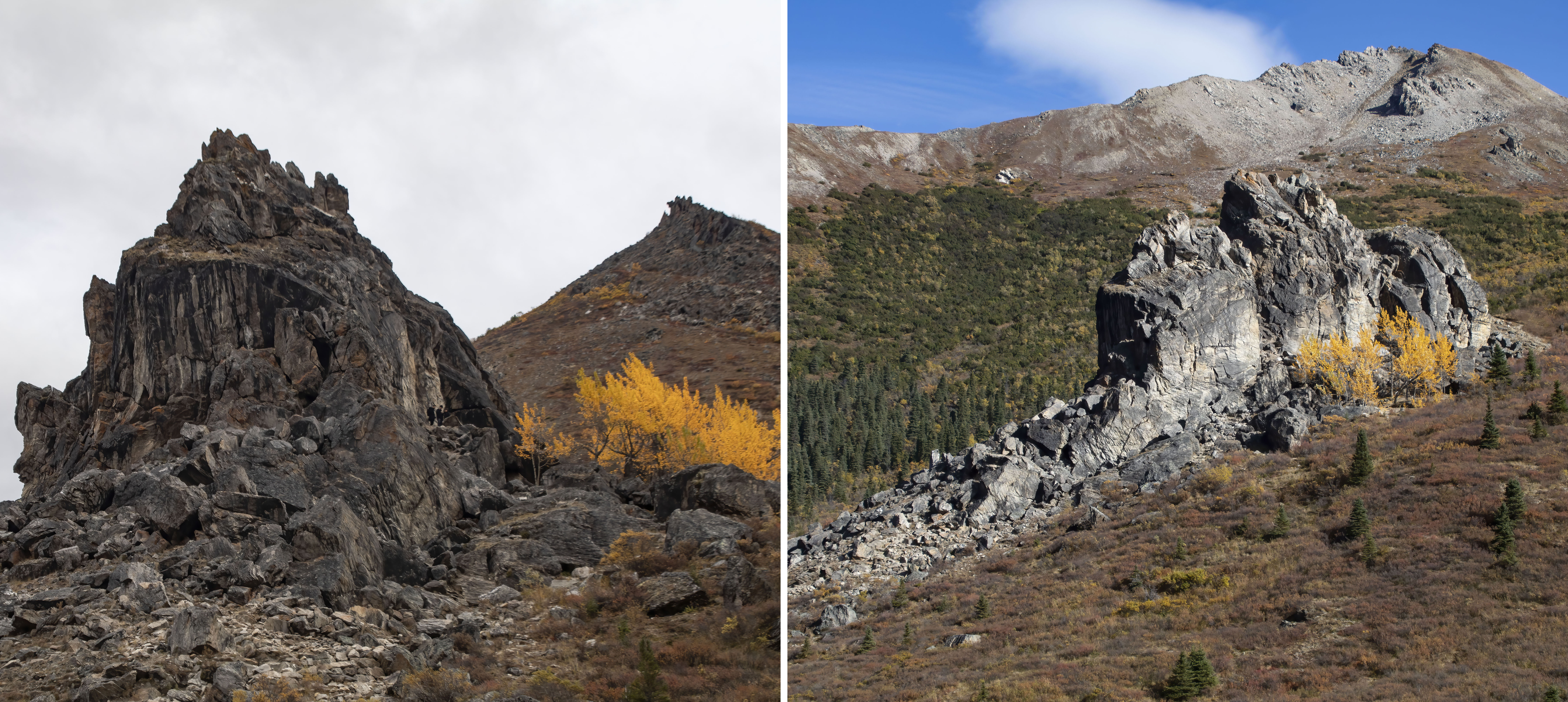 Because of its elevation and cold temperatures, much of Denali is permafrost. On top is a one-inch-to-10-foot-thick active layer that freezes and thaws seasonally. Below that is 30 to 100 feet of ground that stays perpetually frozen. The freeze/thaw cycle can cause heaves, humps or strangely positioned vegetation. As the climate warms, more and more permafrost melts, creating all kinds of problems, including eroding roadbeds.